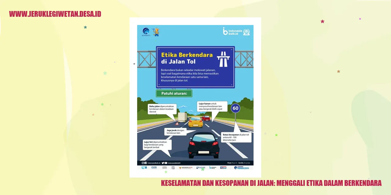 Dalam masyarakat yang semakin sibuk dan serba cepat, keselamatan dan kesopanan di jalan sangat penting. Etika dalam berkendara adalah fondasi perilaku kita di jalan raya. Dengan menghormati aturan, memberi perhatian kepada pengemudi lain, dan tetap tenang dalam situasi sulit, kita dapat menciptakan lingkungan yang lebih aman dan nyaman bagi semua pengguna jalan. Ingatlah, keselamatan dan kesopanan di jalan adalah tanggung jawab kita bersama. Mari kita saling menghormati dan menjaga keselamatan bersama.